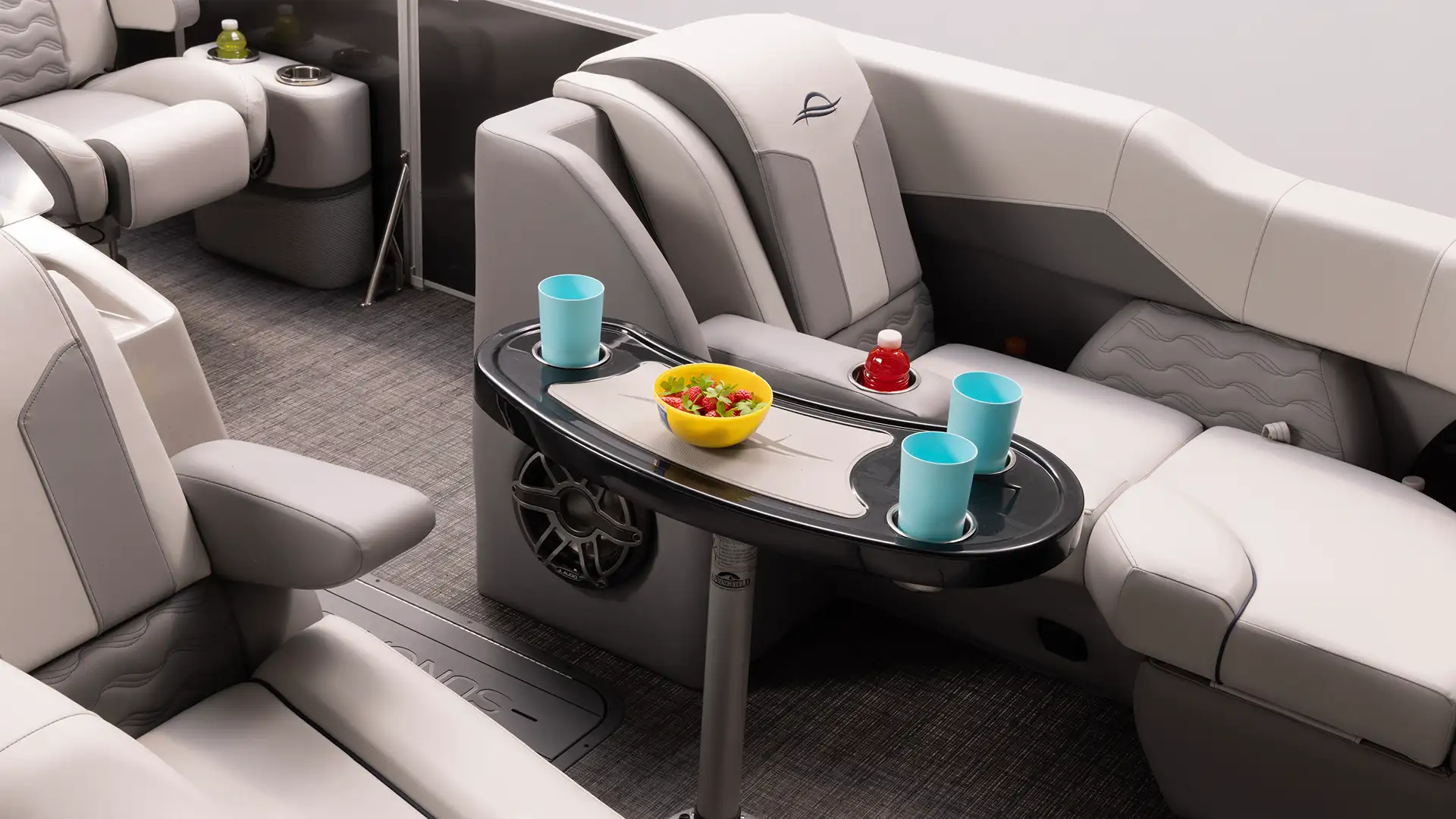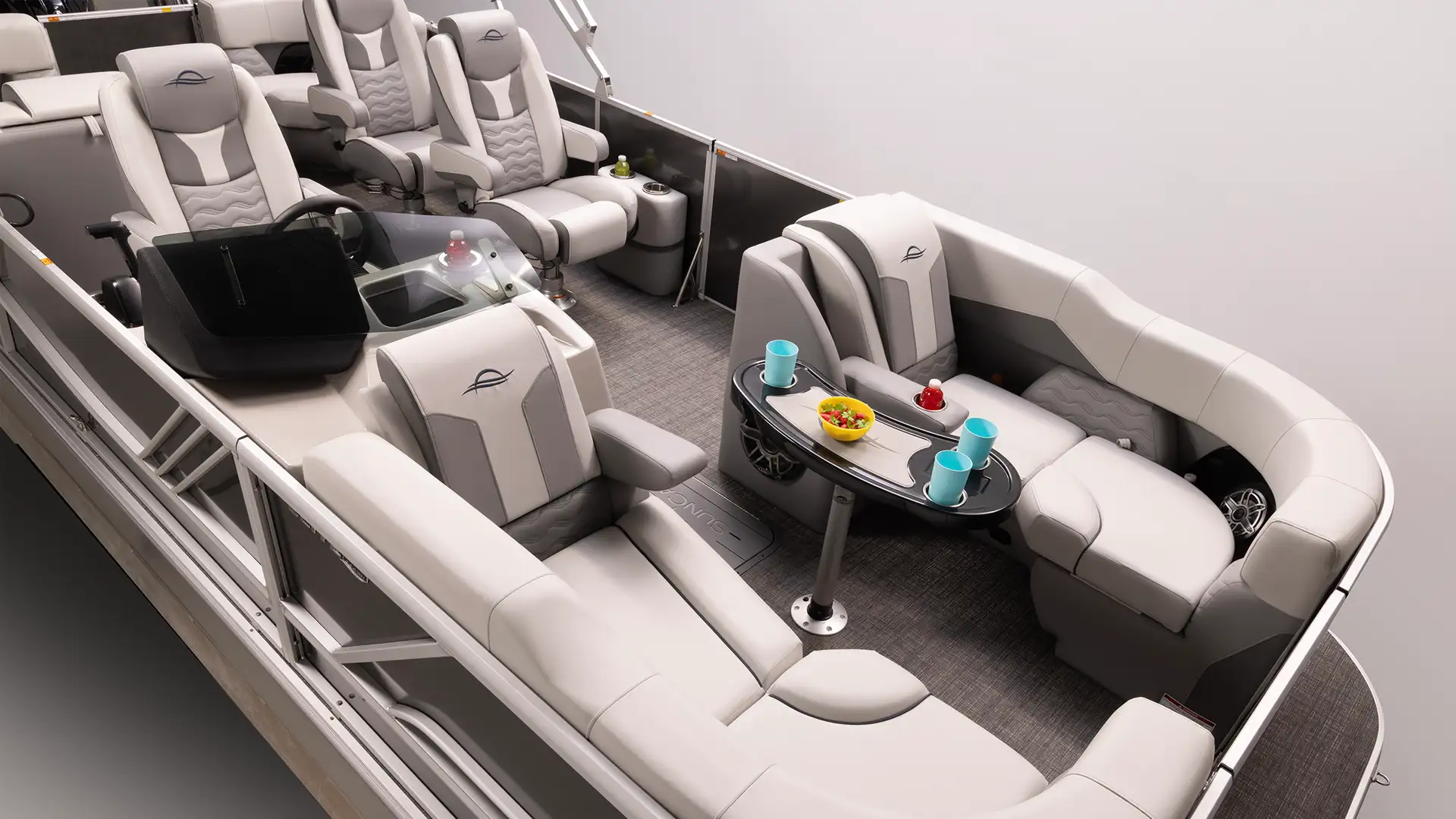 For 2026, the SunCatcher Elite SR debuts with a layout built for socializing. An added stern passenger helm seat creates a casual, comfortable space that turns the stern into your go-to hangout when anchored in the cove.