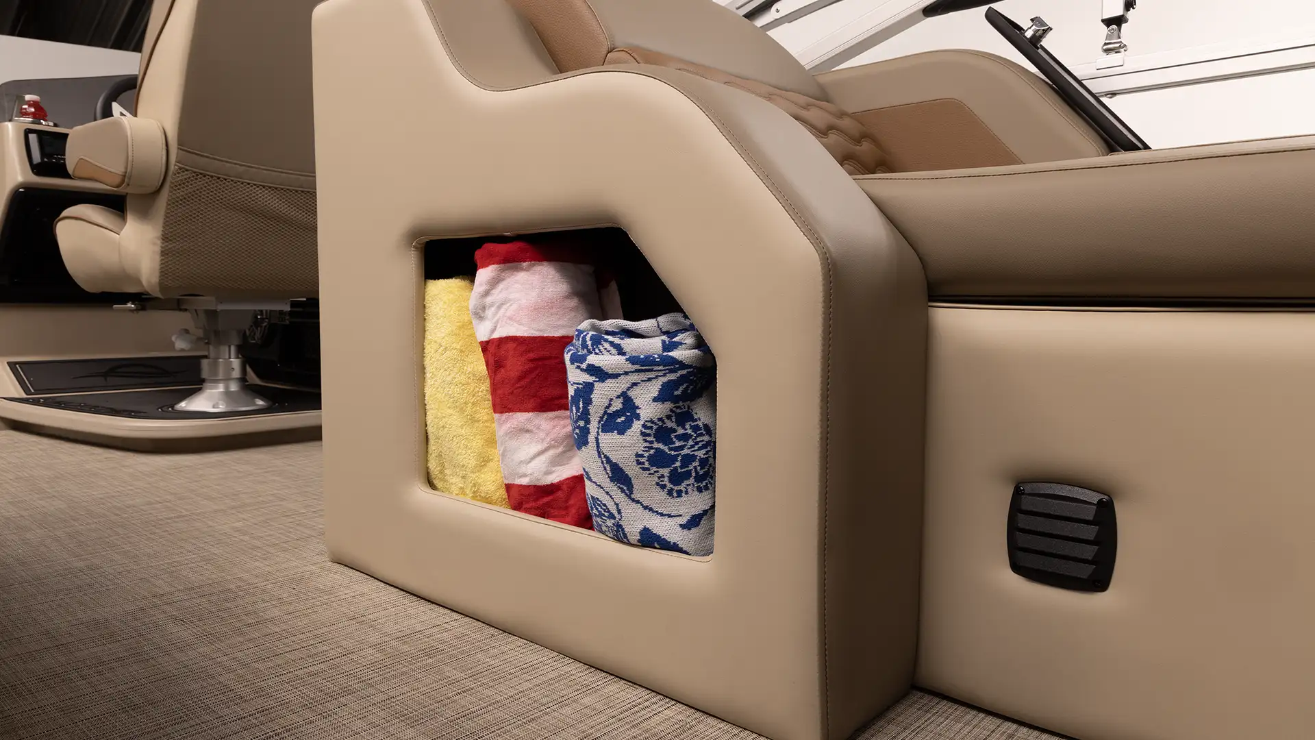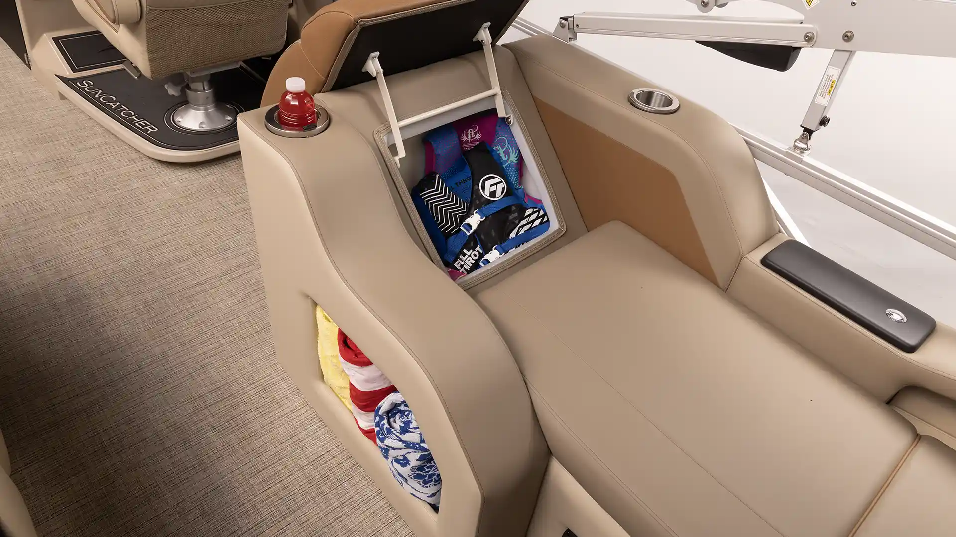 Gracefully styled loungers in the Elite SS models provide the perfect place to stretch out. Integrated storage, convenient cup holders, and a small amenity compartment keep essentials close, while the loungers also add generous space for larger gear.